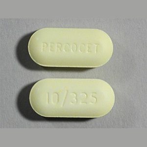 Percocet 5–325 mg: It may be a blue tablet with PERCOCET engraved on one side and a portion on the other side.